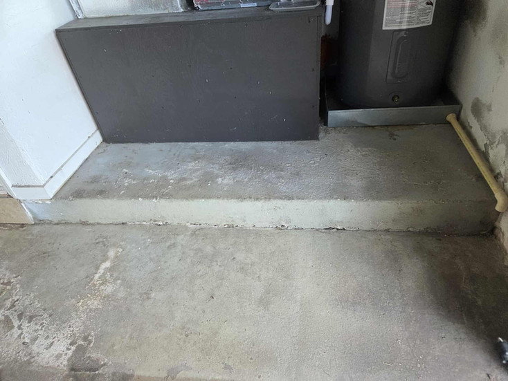 The slab was originally poured more than 20 years ago with too much water in the mix. Over time, this caused latent concrete—hidden weakness beneath the surface—to break down, spall, and separate from the top layer.